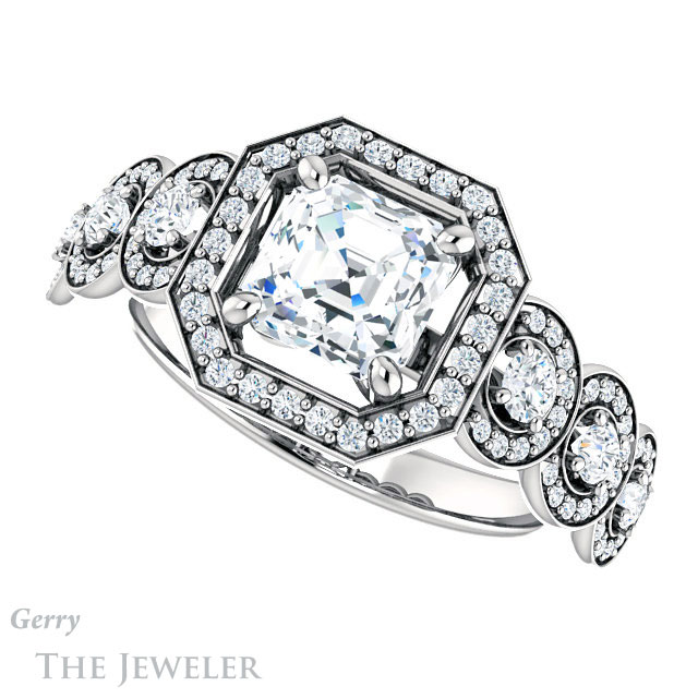Asscher Cut Forever One Engagement Ring Setting #GTJ1078-asscher-fo-w