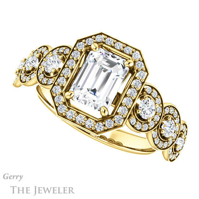 Emerald Cut Forever One Moissanite Engagement Ring #GTJ1078-emerald-fb-y