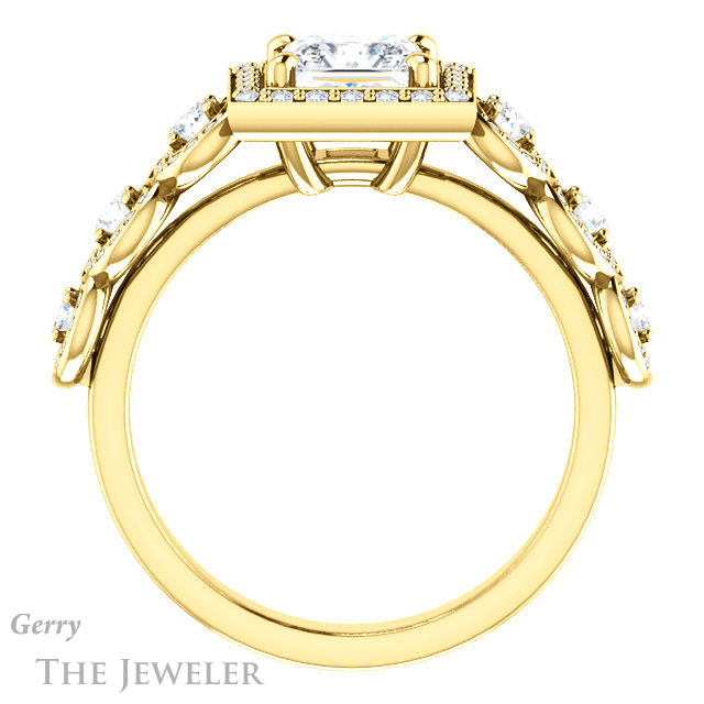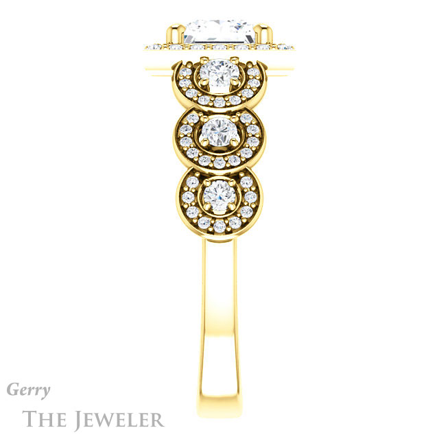 - This design can be set with your choice of certified lab grown diamond or moissanite center gem.Â