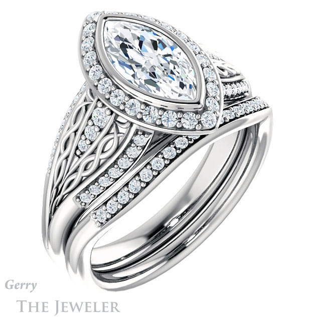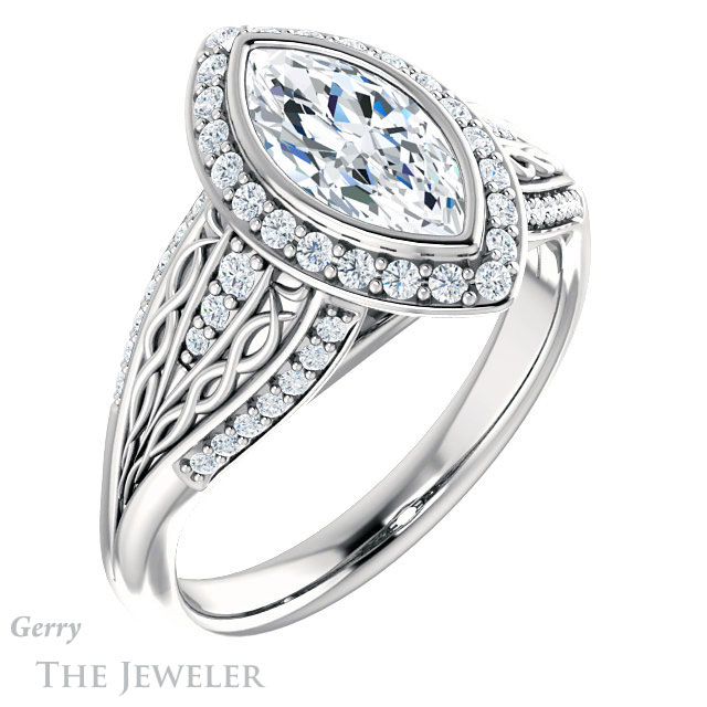 Marquise Cut Forever One Moissanite Engagement Ring #GTJ1082-marquise-fb-w