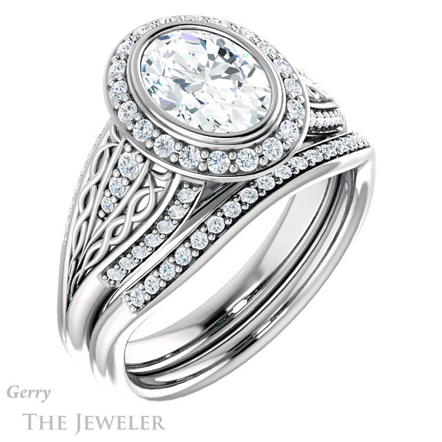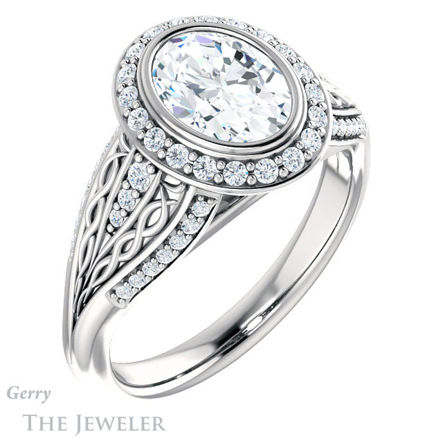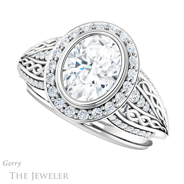 Oval Shaped Forever One Moissanite Engagement Ring #GTJ1082-oval-fo-w