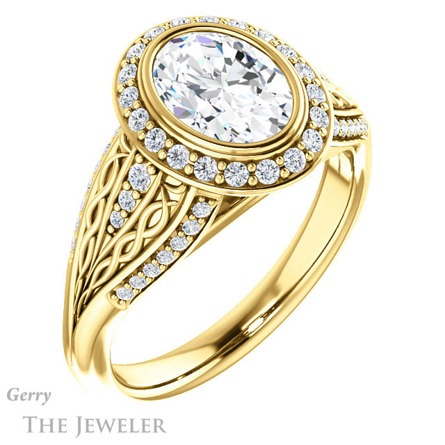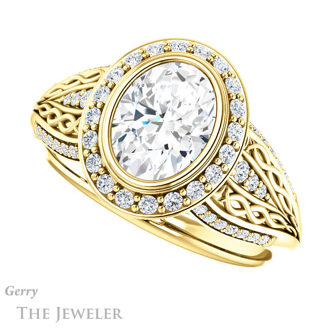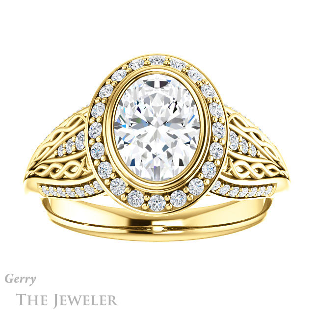 Oval Shaped Forever One Moissanite Engagement Ring #GTJ1082-oval-fo-y