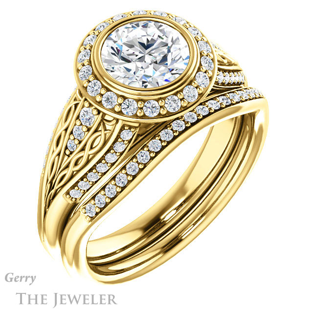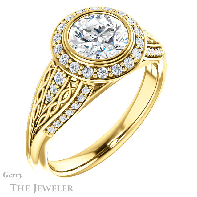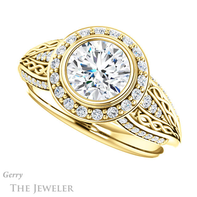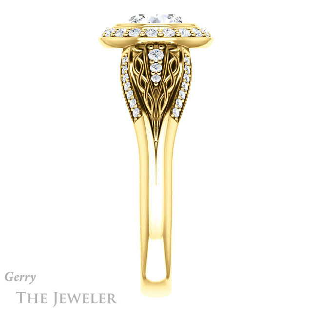 - This design can be set with your choice of certified lab grown diamond or moissanite center gem.Â