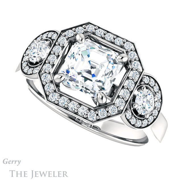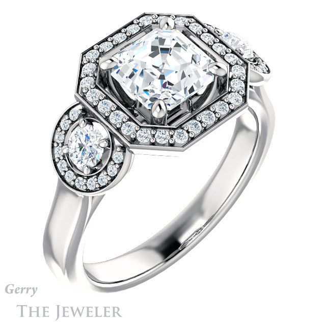 Asscher Cut Forever One Engagement Ring Setting #GTJ1084-asscher-fo-w