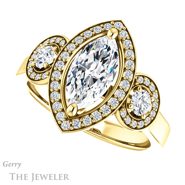 Marquise Cut Forever One Moissanite Engagement Ring #GTJ1084-marquise-fb-y