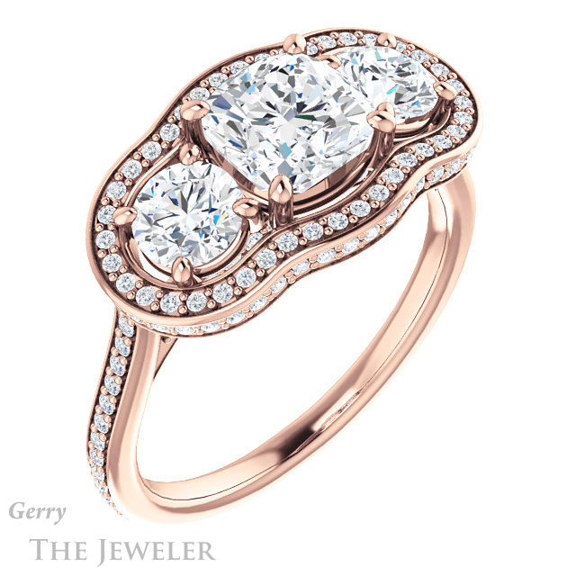 - Accent gems (if any) are set with matching color and clarity of diamonds based on your center gem selection.