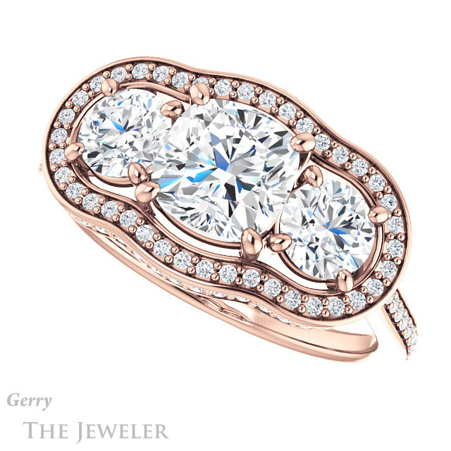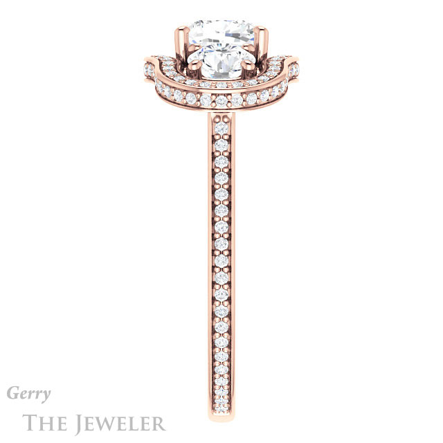 - This design can be set with your choice of certified lab grown diamond or moissanite center gem.Â