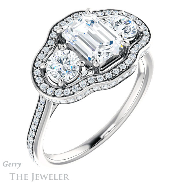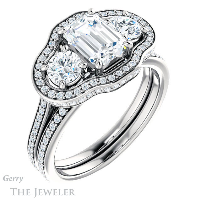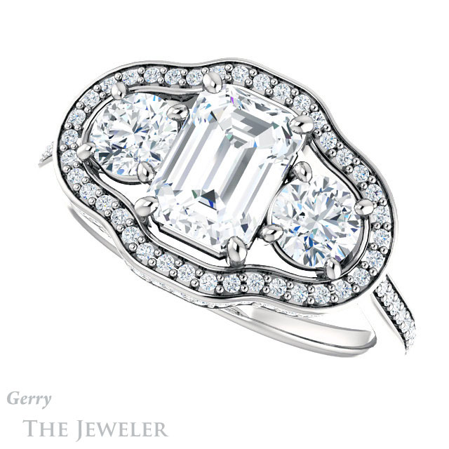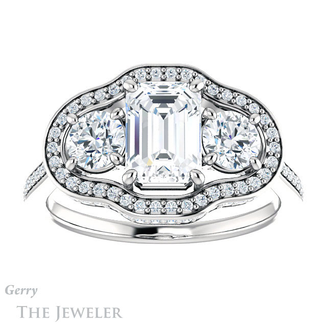 Emerald Cut Forever One Moissanite Engagement Ring #GTJ1095-emerald-fb-w