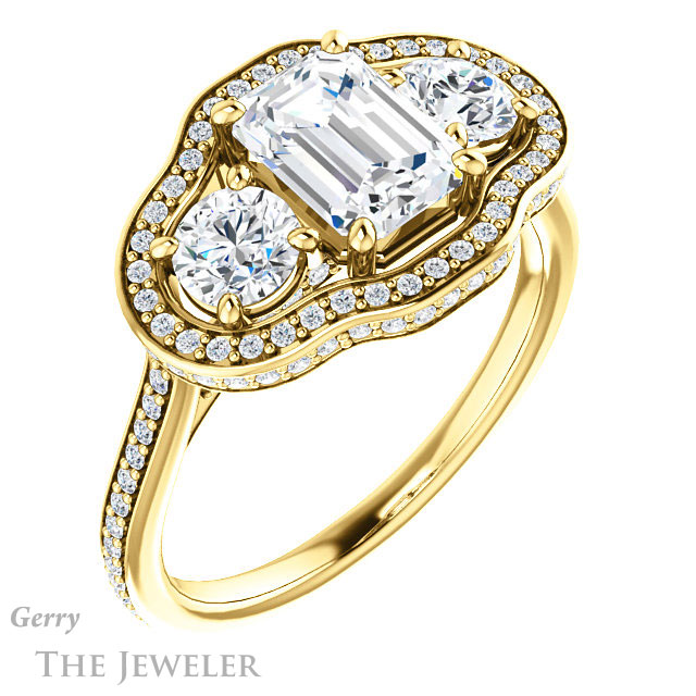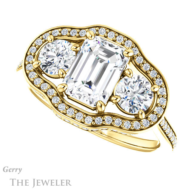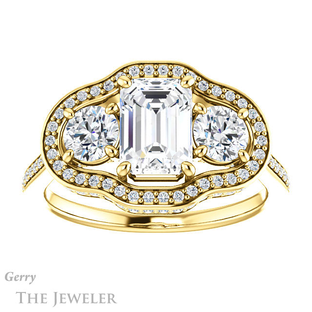 Emerald Cut Forever One Moissanite Engagement Ring #GTJ1095-emerald-fb-y