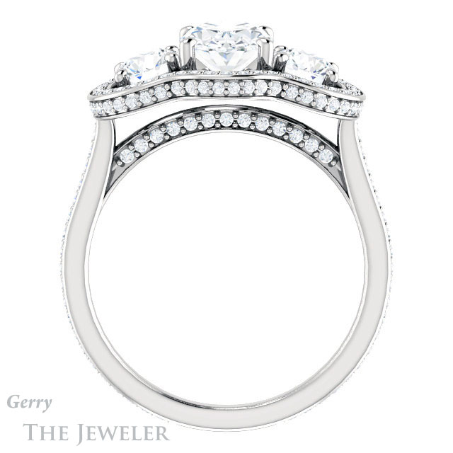 - This design can be set with your choice of certified lab grown diamond or moissanite center gem.Â