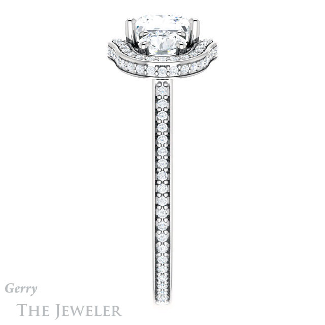 - This design can be set with your choice of certified lab grown diamond or moissanite center gem.Â
