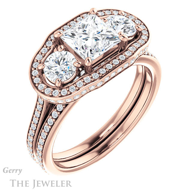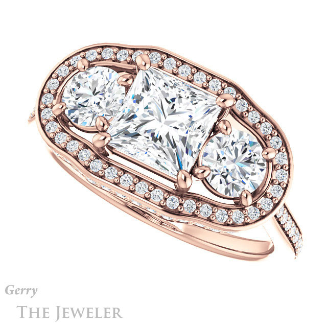 - This design can be set with your choice of certified lab grown diamond or moissanite center gem.Â
