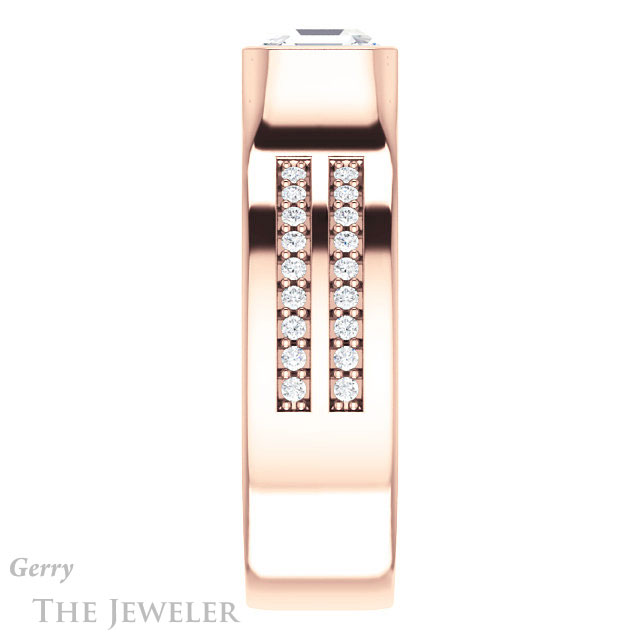 - This design can be set with your choice of certified lab grown diamond or moissanite center gem.Â