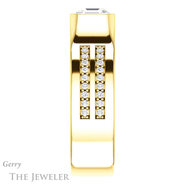 - This design can be set with your choice of certified lab grown diamond or moissanite center gem.Â