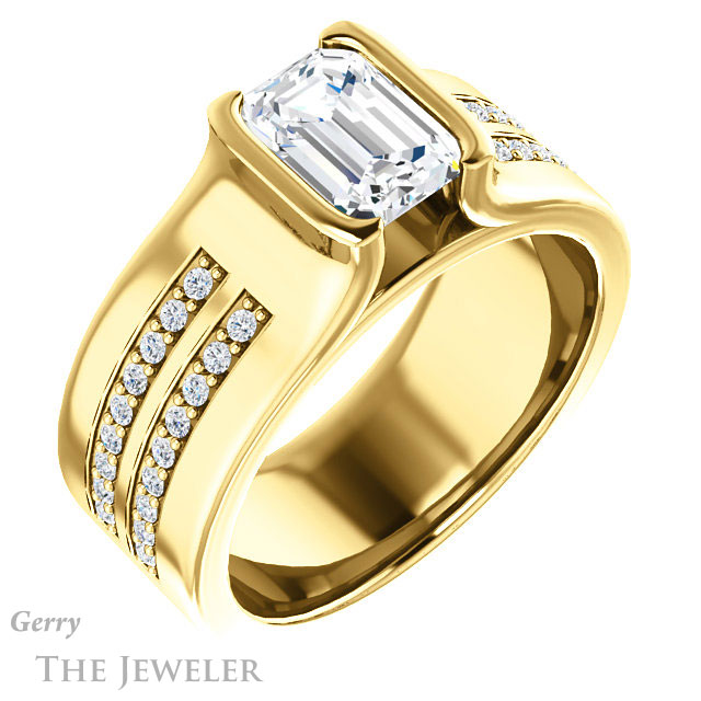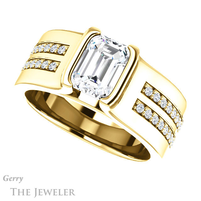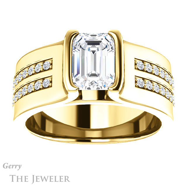 Emerald Cut Forever One Moissanite Engagement Ring #GTJ1098-emerald-fb-y