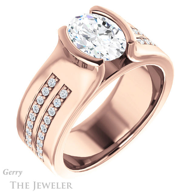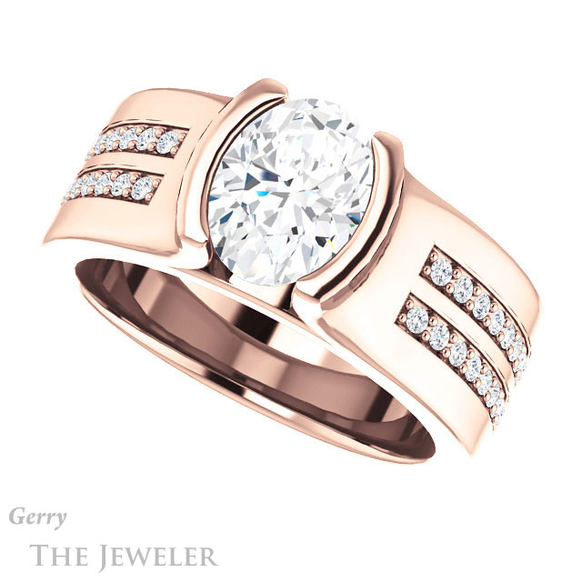 - This design can be set with your choice of certified lab grown diamond or moissanite center gem.Â