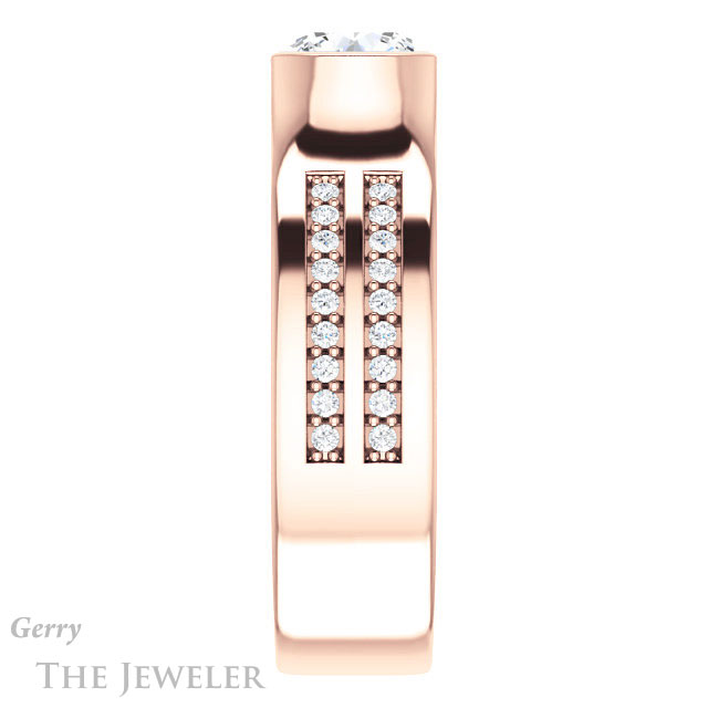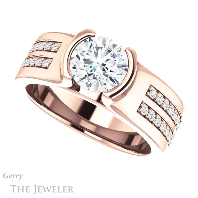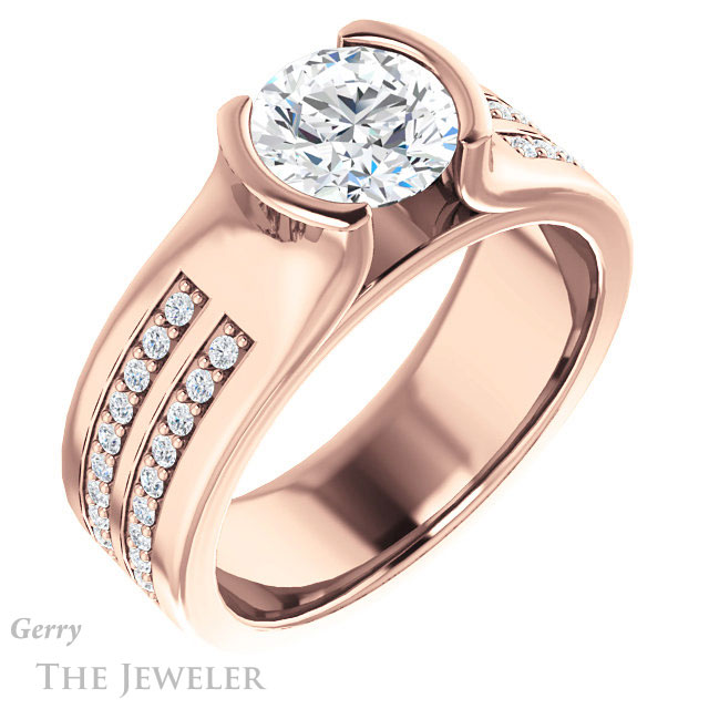 - This design can be set with your choice of certified lab grown diamond or moissanite center gem.Â