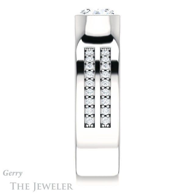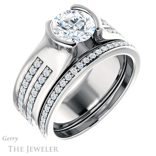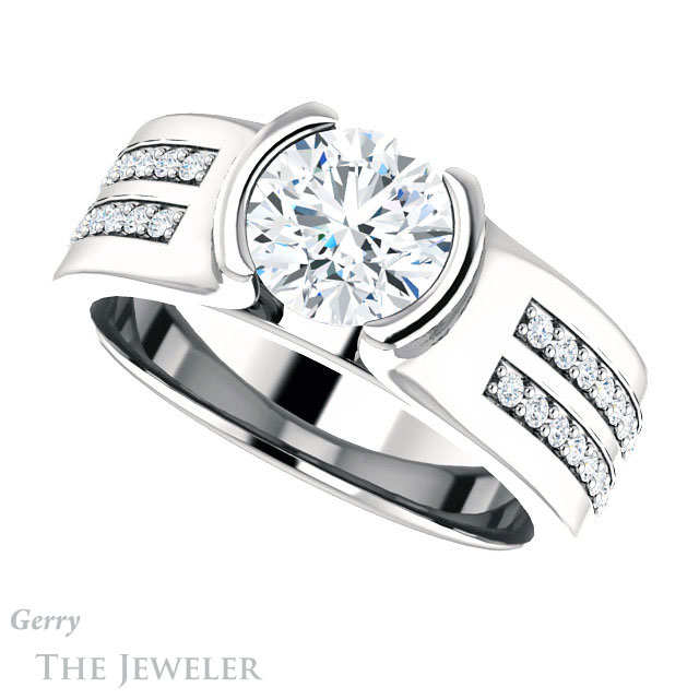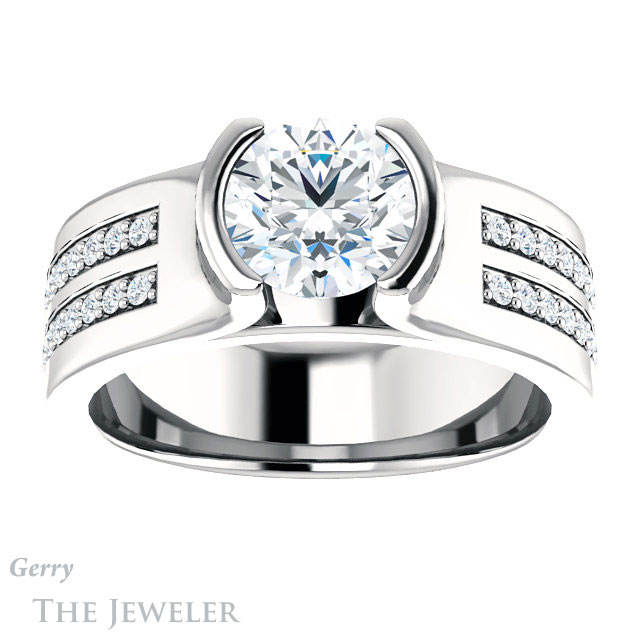 - This design can be set with your choice of certified lab grown diamond or moissanite center gem.Â