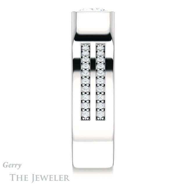 - This design can be set with your choice of certified lab grown diamond or moissanite center gem.Â