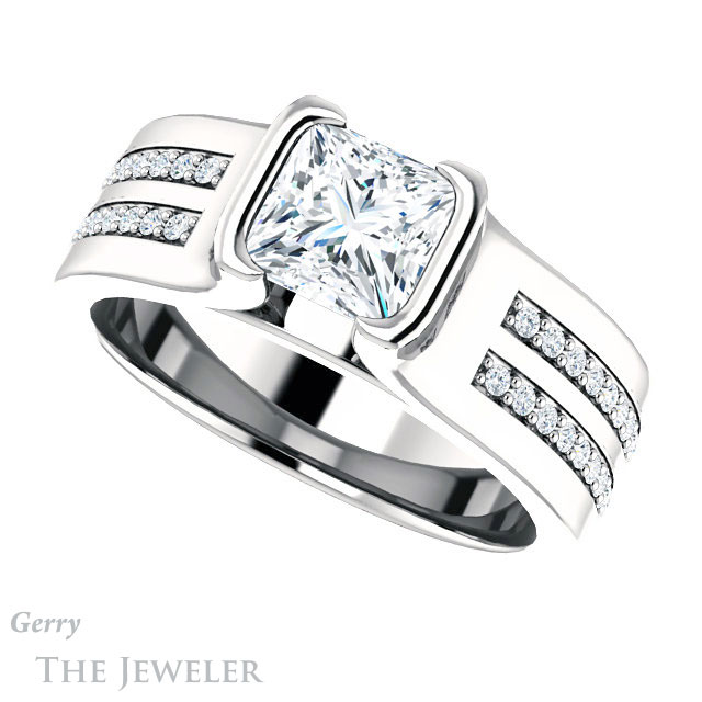 Princess Cut Forever One Moissanite Engagement Ring #GTJ1098-square-fo-w