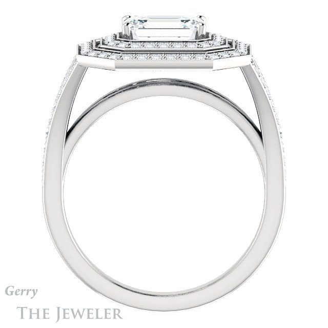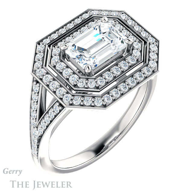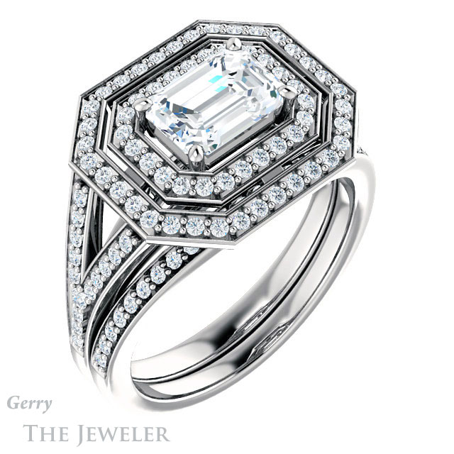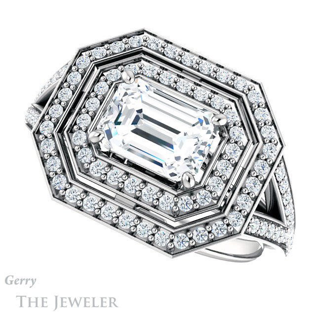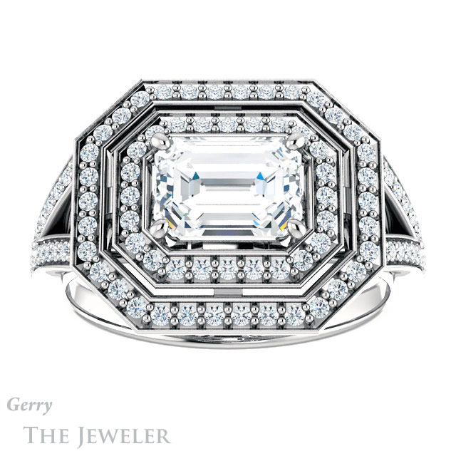 Emerald Cut Forever One Moissanite Engagement Ring #GTJ1101-emerald-fb-w