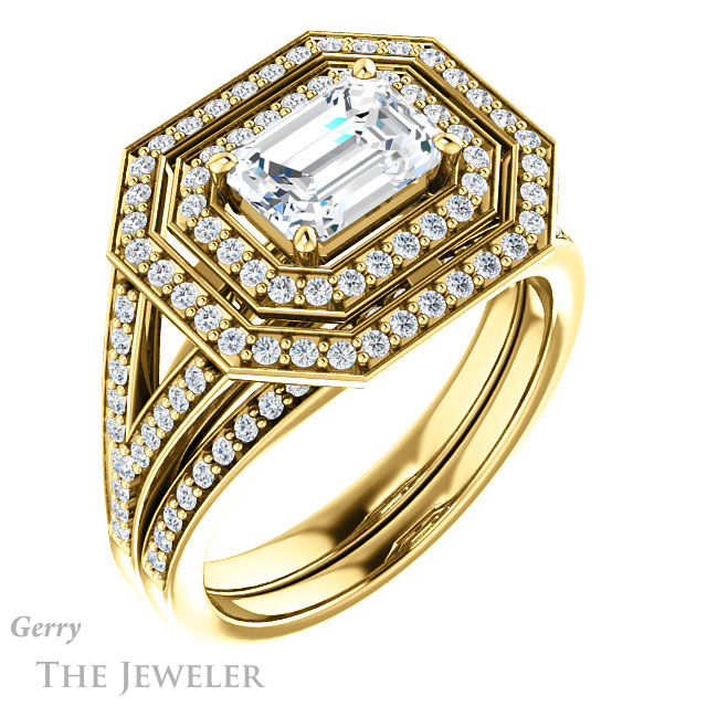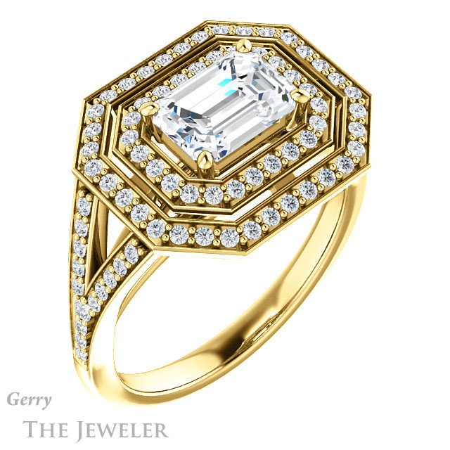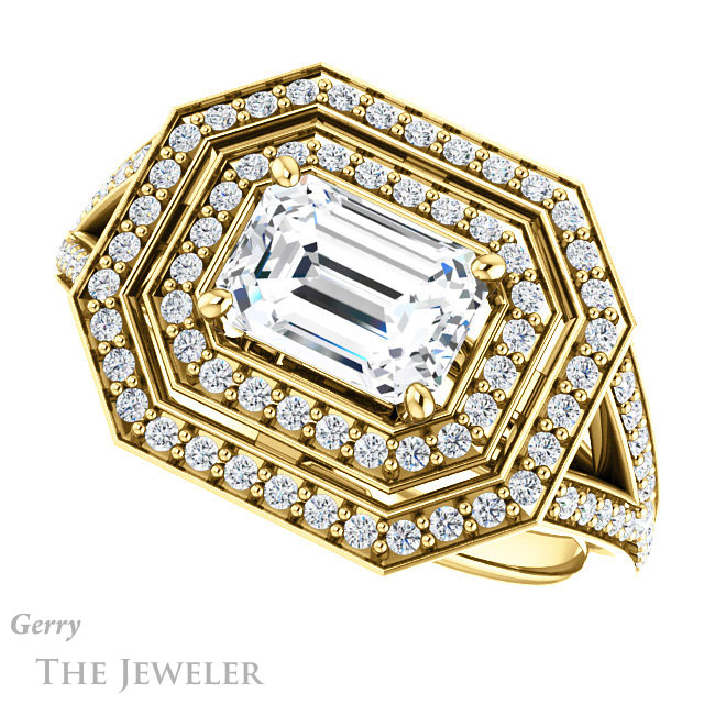 Emerald Cut Forever One Moissanite Engagement Ring #GTJ1101-emerald-fb-y