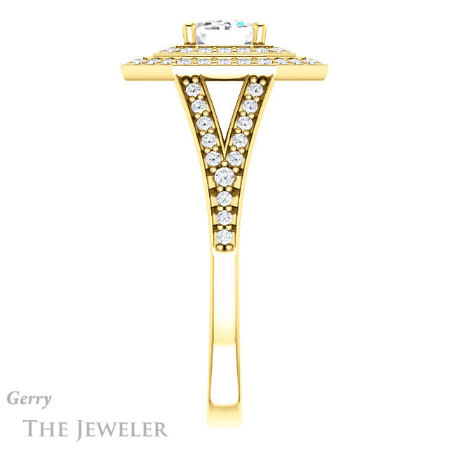 - This design can be set with your choice of certified lab grown diamond or moissanite center gem.Â