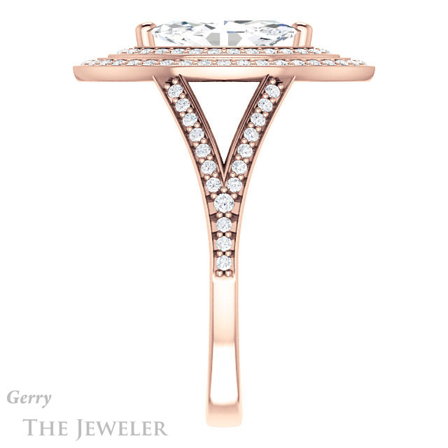- This design can be set with your choice of certified lab grown diamond or moissanite center gem.Â