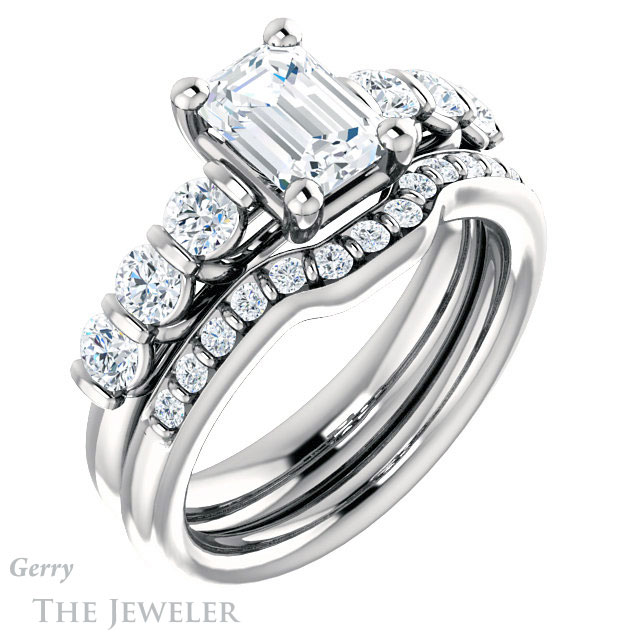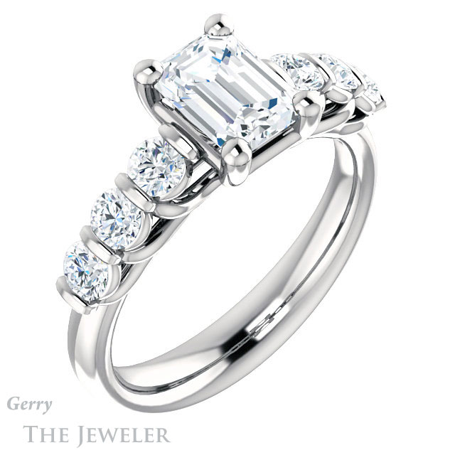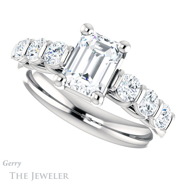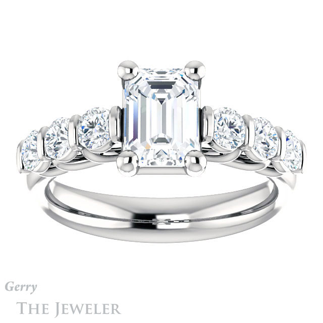 Emerald Cut Forever One Moissanite Engagement Ring #GTJ1103-emerald-fb-w
