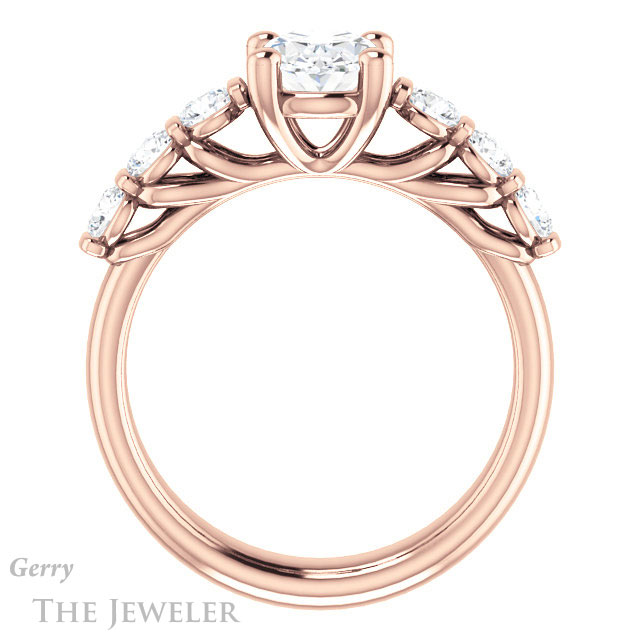 - This design can be set with your choice of certified lab grown diamond or moissanite center gem.Â