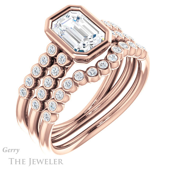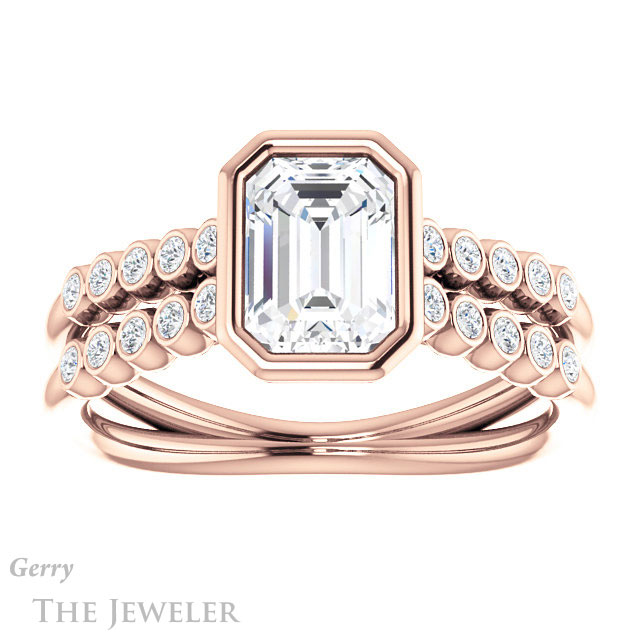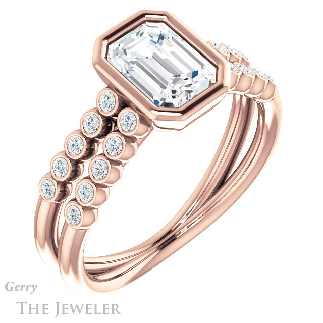 Emerald Cut Forever One Moissanite Engagement Ring #GTJ1107-emerald-fb-r