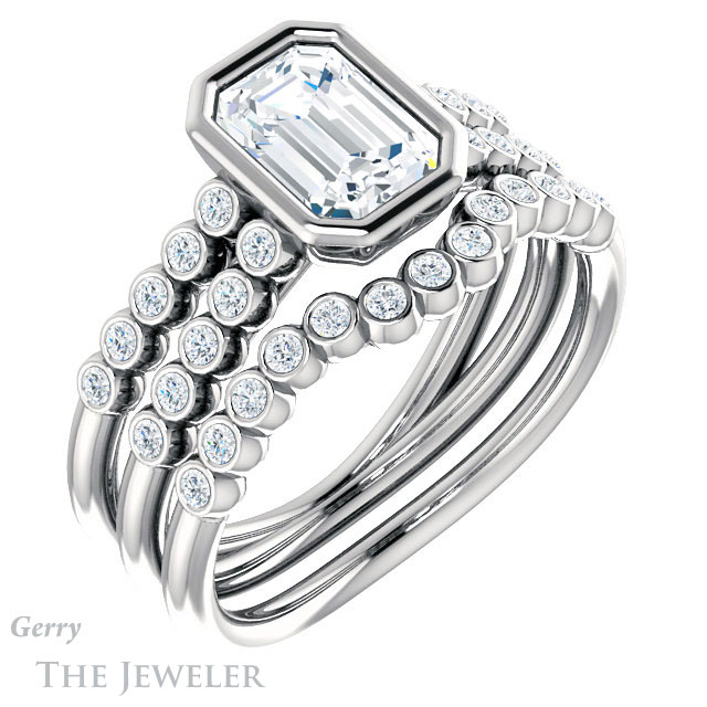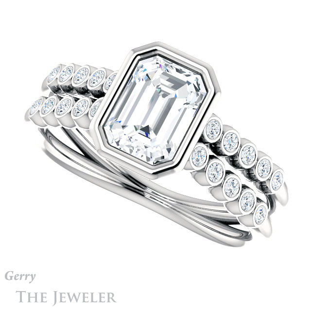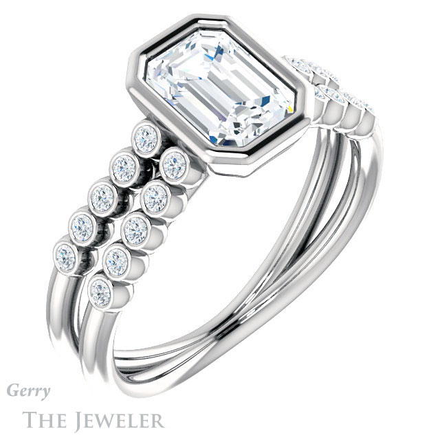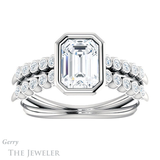 Emerald Cut Forever One Moissanite Engagement Ring #GTJ1107-emerald-fb-w