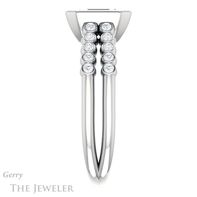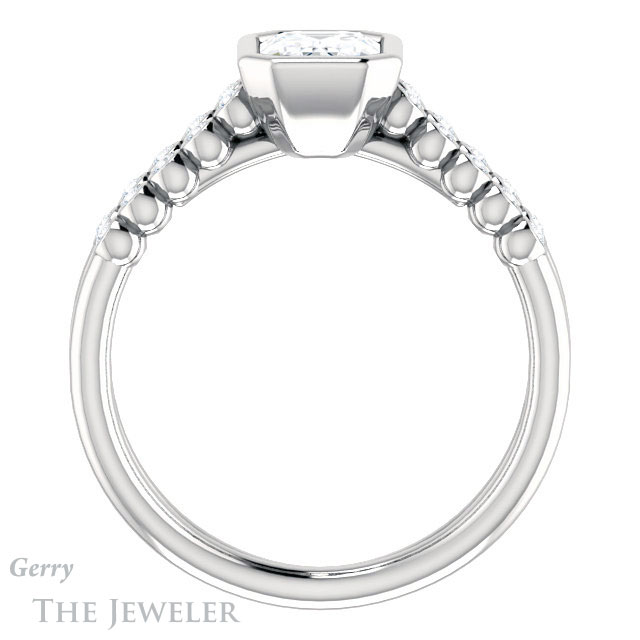 - This design can be set with your choice of certified lab grown diamond or moissanite center gem.Â