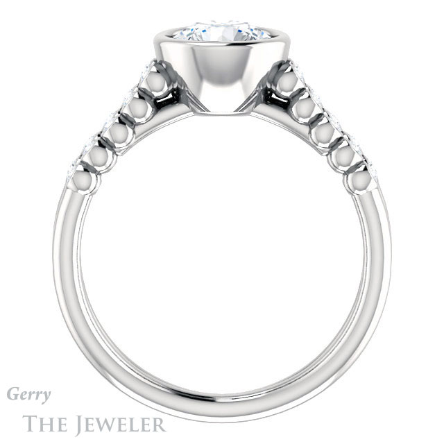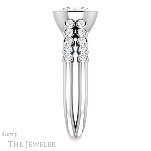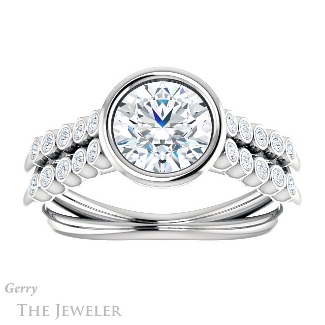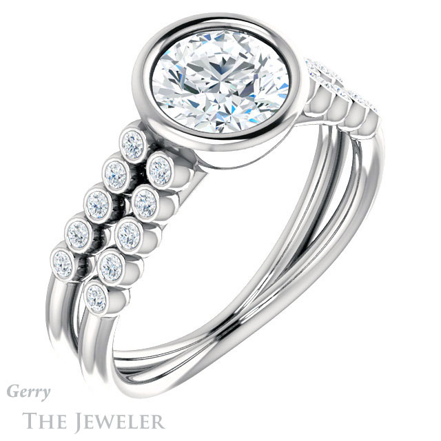 - This design can be set with your choice of certified lab grown diamond or moissanite center gem.Â