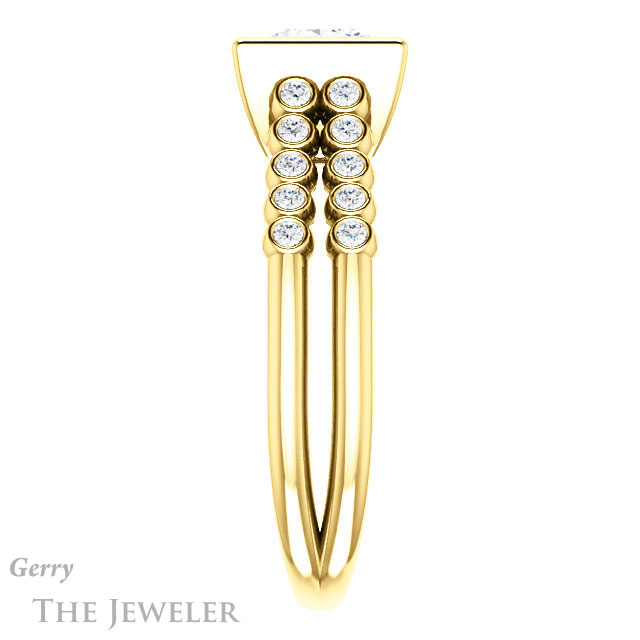 - This design can be set with your choice of certified lab grown diamond or moissanite center gem.Â