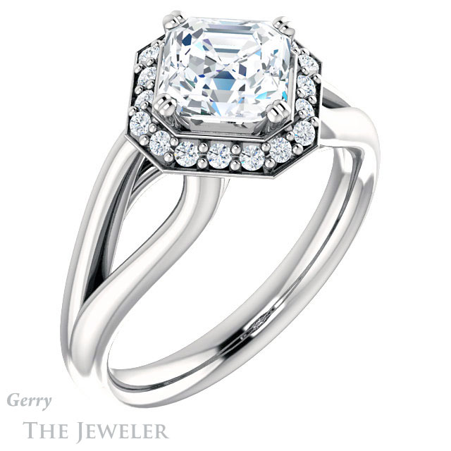 Asscher Cut Forever One Engagement Ring Setting #GTJ1108-asscher-fo-w