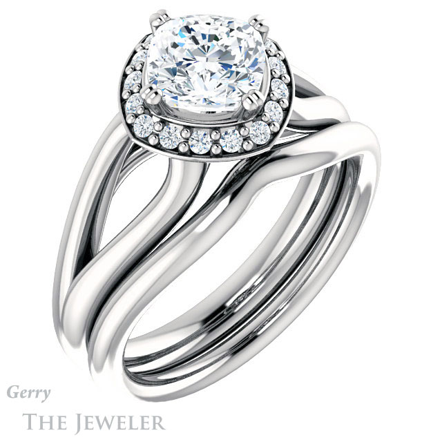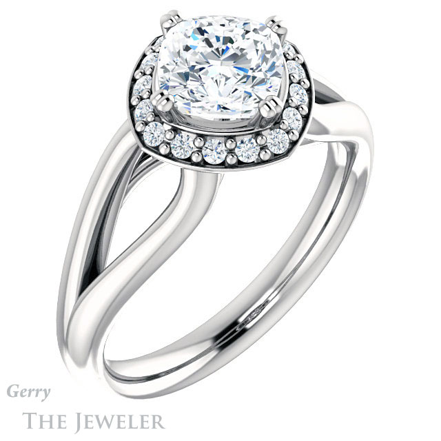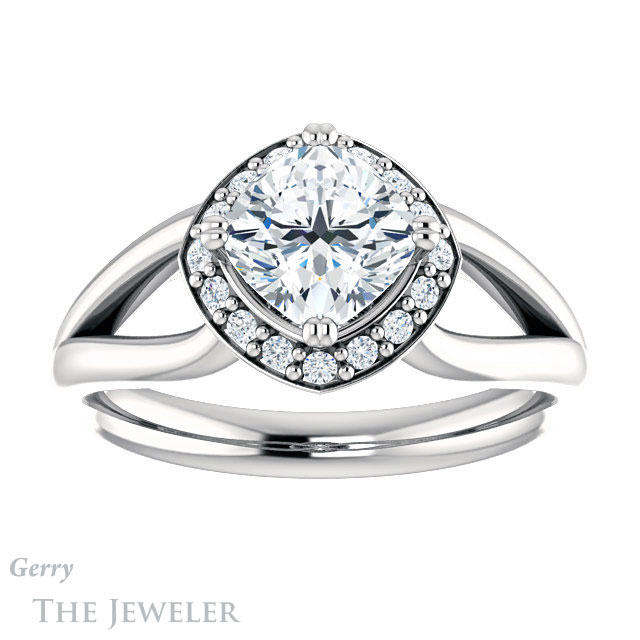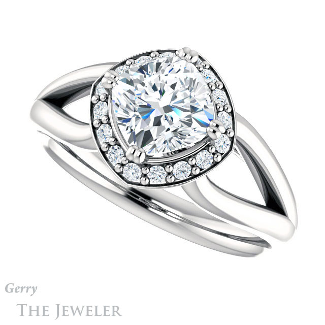 Cushion Cut Forever One Moissanite Engagement Ring #GTJ1108-cushion-fo-w
