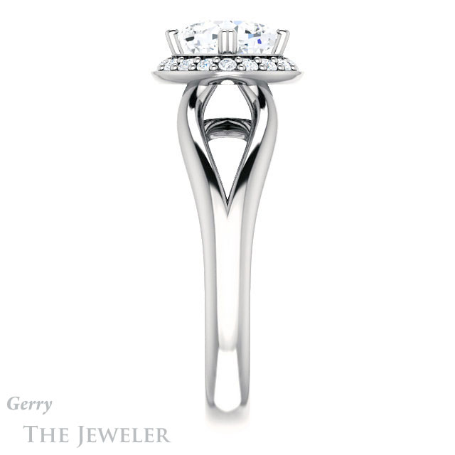 - This design can be set with your choice of certified lab grown diamond or moissanite center gem.Â