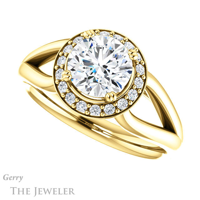 Round Cut Forever One Moissanite Engagement Ring #GTJ1108-round-fo-y