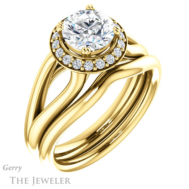 - This design can be set with your choice of certified lab grown diamond or moissanite center gem.Â