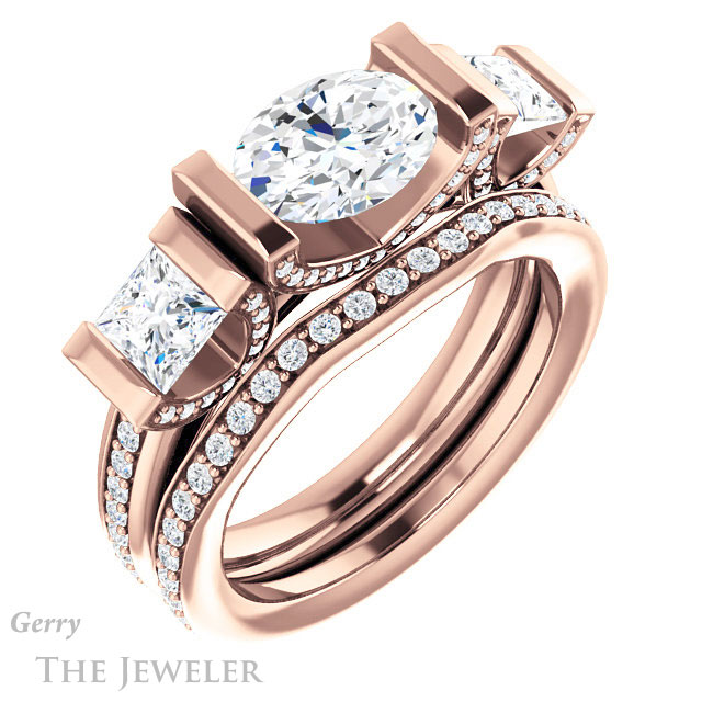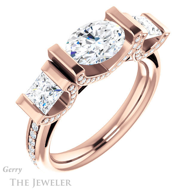 - This design can be set with your choice of certified lab grown diamond or moissanite center gem.Â