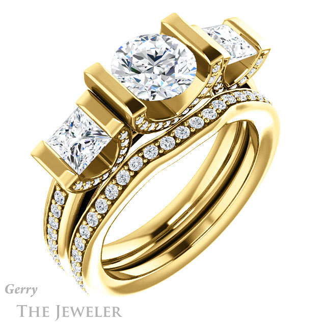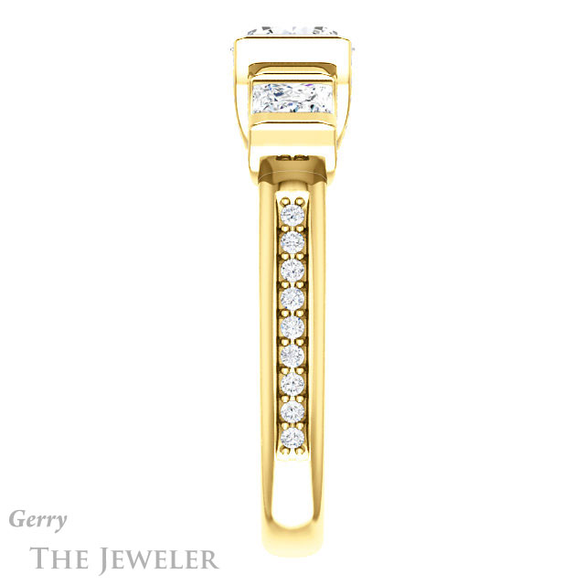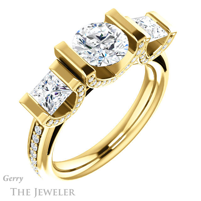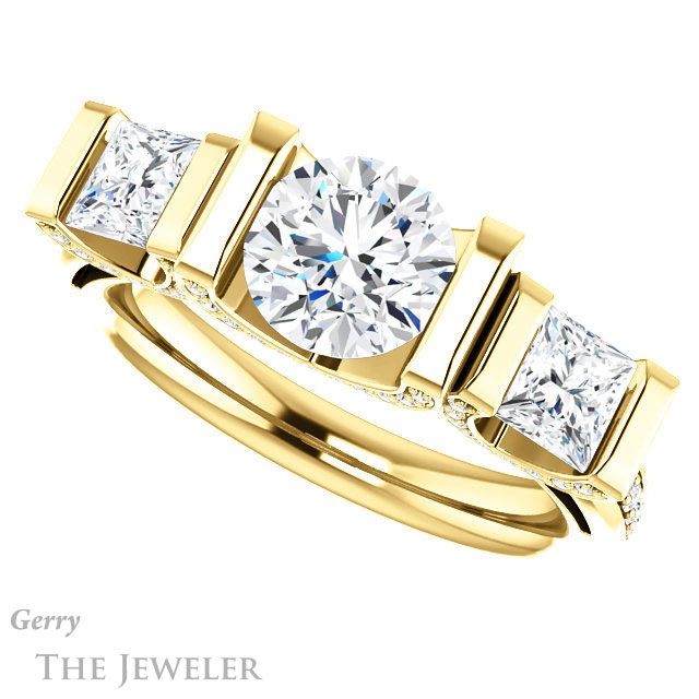 - This design can be set with your choice of certified lab grown diamond or moissanite center gem.Â