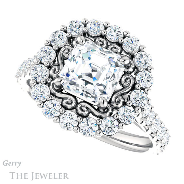 Asscher Cut Forever One Engagement Ring Setting #GTJ1113-asscher-fo-w