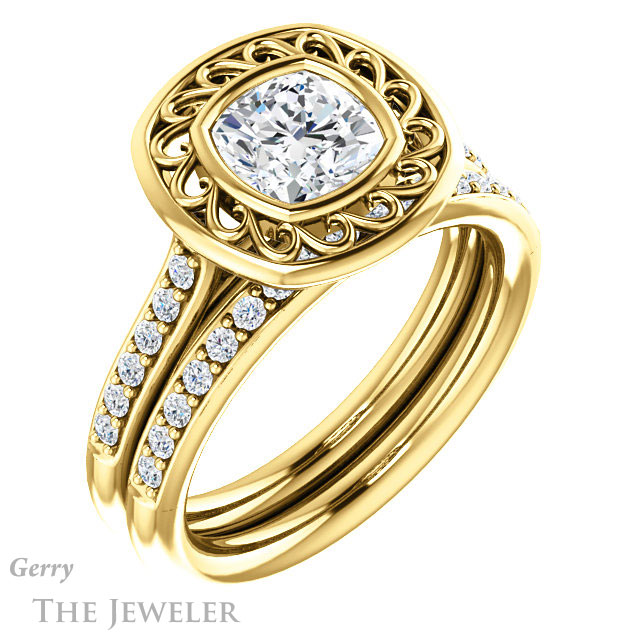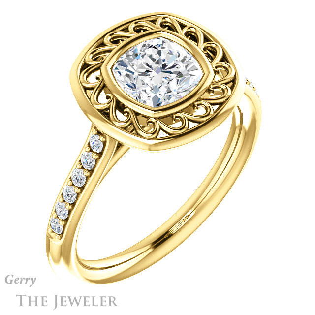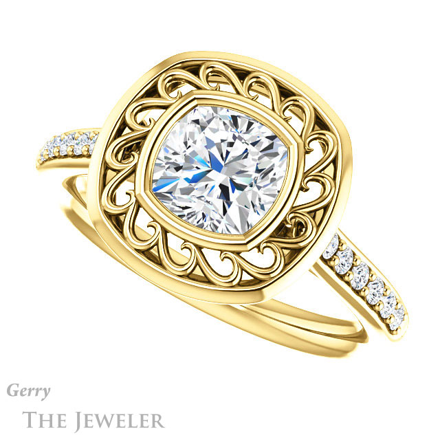 Cushion Cut Forever One Moissanite Engagement Ring #GTJ1114-cushion-fo-y