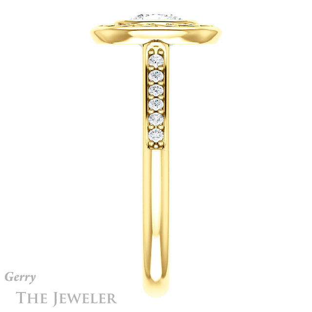 - This design can be set with your choice of certified lab grown diamond or moissanite center gem.Â