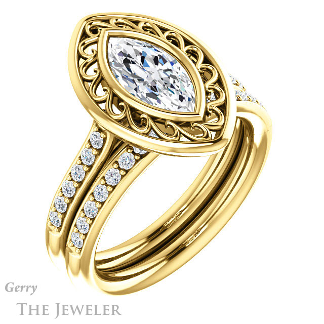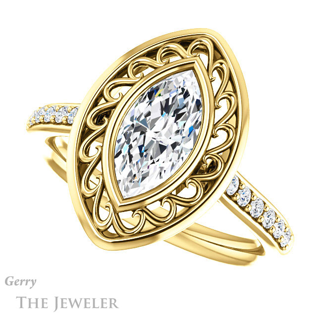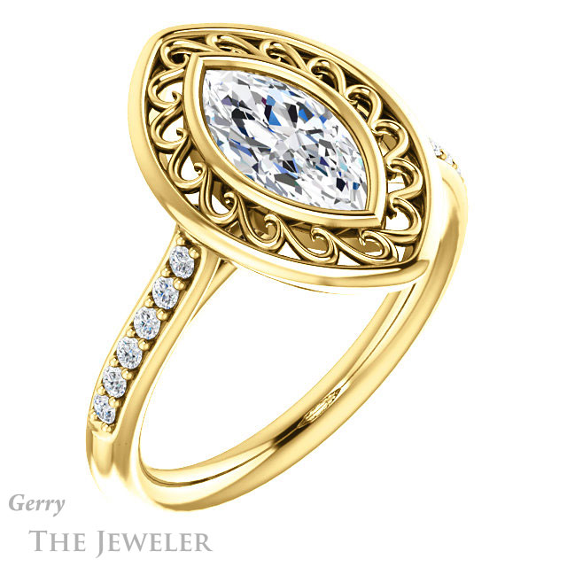 Marquise Cut Forever One Moissanite Engagement Ring #GTJ1114-marquise-fb-y