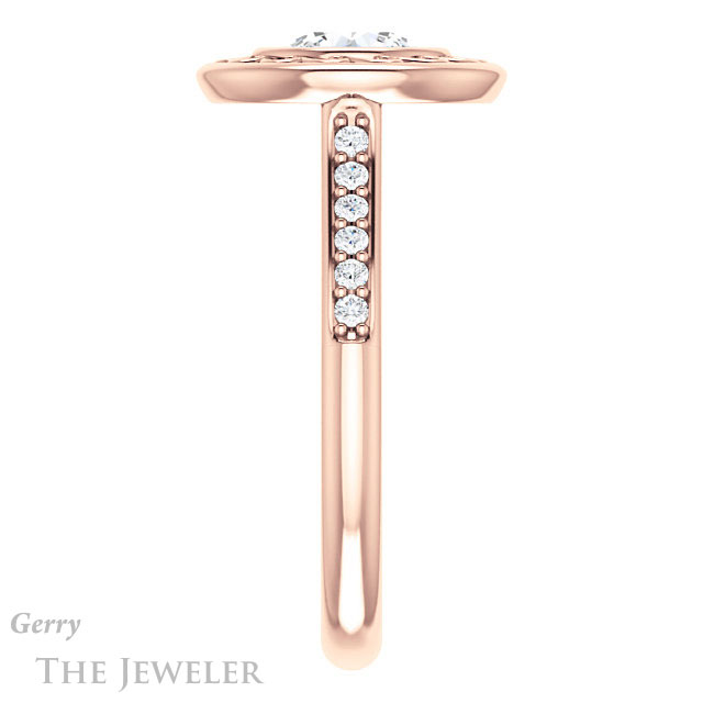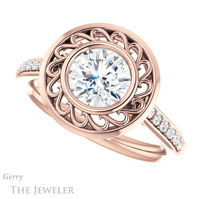 - This design can be set with your choice of certified lab grown diamond or moissanite center gem.Â
