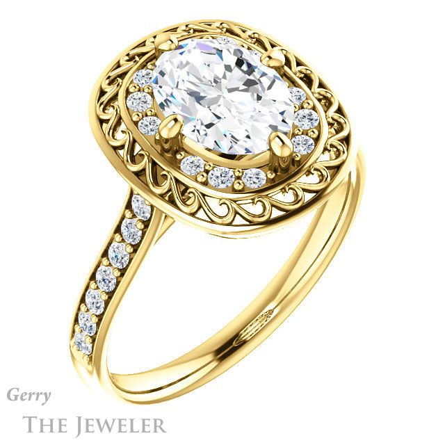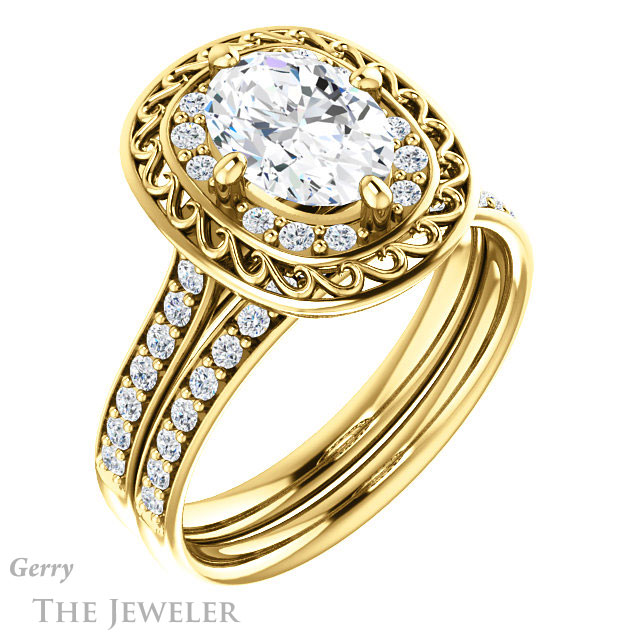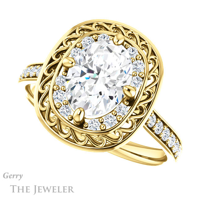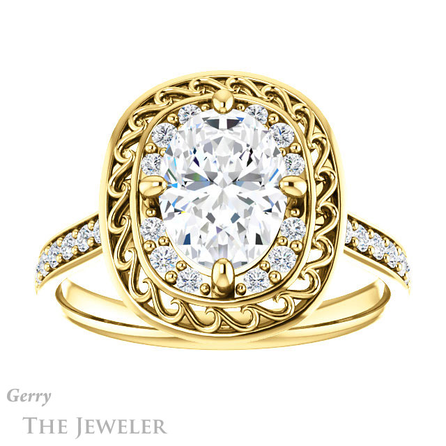 Oval Shaped Forever One Moissanite Engagement Ring #GTJ1115-oval-fo-y