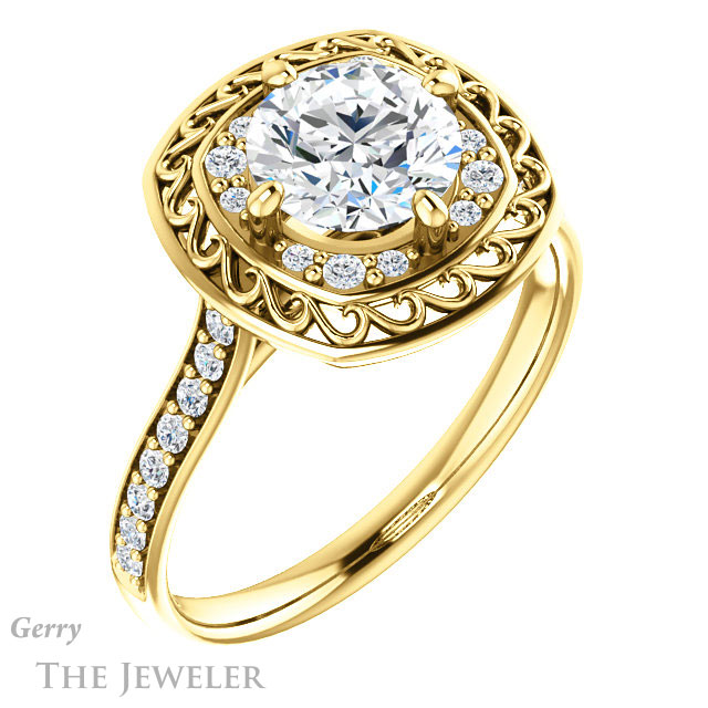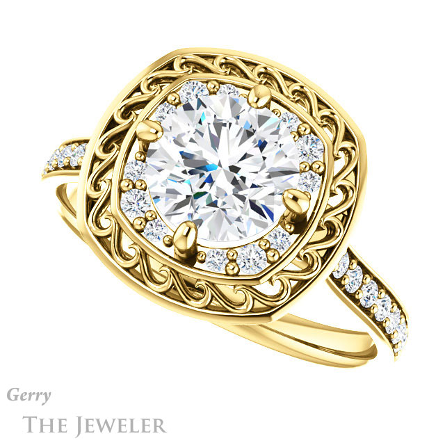 Round Cut Forever One Moissanite Engagement Ring #GTJ1115-round-fo-y