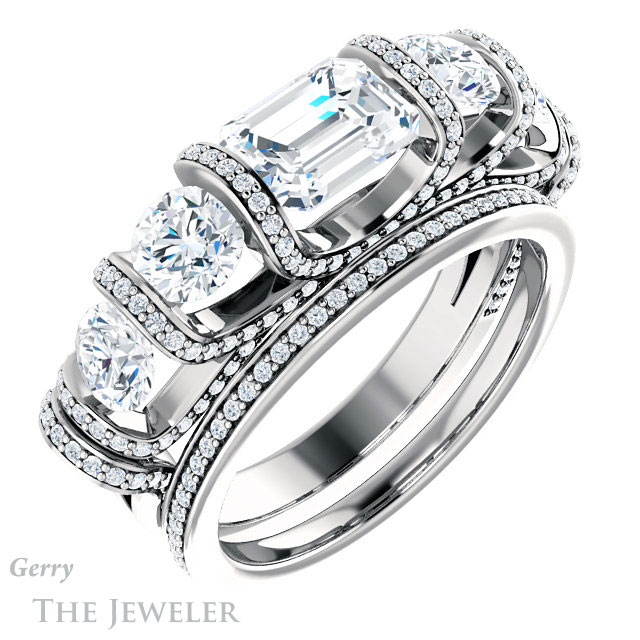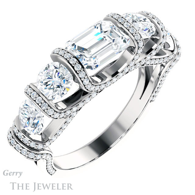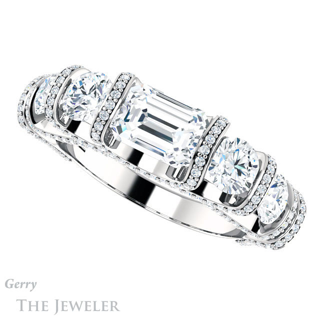 Emerald Cut Forever One Moissanite Engagement Ring #GTJ1118-emerald-fb-w